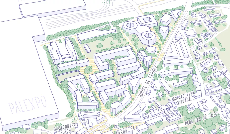 En 2025, les habitants du Grand-Saconnex ont été invités à découvrir l’avancement du projet et à partager leur avis lors de la Fête de la Susette ainsi qu’au moyen d’un questionnaire en ligne (participer.ge.ch). Les contributions recueillies ont permis de mieux comprendre les attentes et les préoccupations des habitant·e·s pour les intégrer dans l’élaboration du plan localisé de quartier (PLQ).